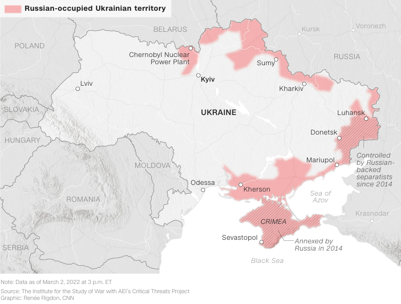 而南部城市赫尔松Kherson的市长表示,该市已于3月2日(周三)沦陷,称乌克兰军队已经撤离。然而据英国军事情报称,具体情况仍不清楚。
