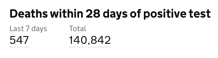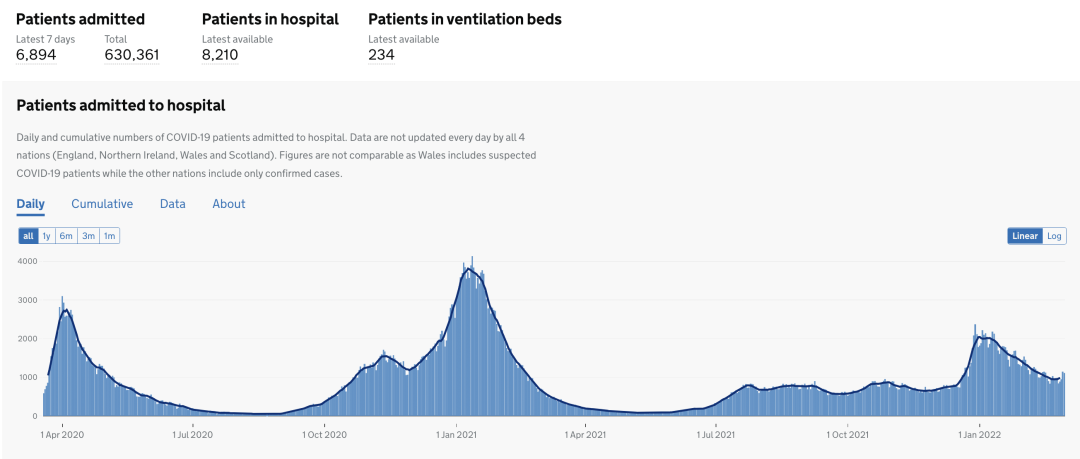 目前英格兰地区使用呼吸机的新冠患者有234人(-15);病亡新冠患者总计140,842人(+547)。
