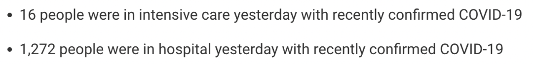 从2021年3月5日以来,苏格兰地区共有33,656名(+83)确诊患者出院。截至3月3日午夜,近期住院的疑似/确诊新冠患者1,272名(+46),其中16名(=)确诊新冠在重症监护室ICU。