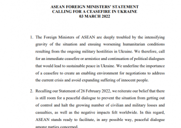 ASEAN call for a ceasefire in Ukraine /
