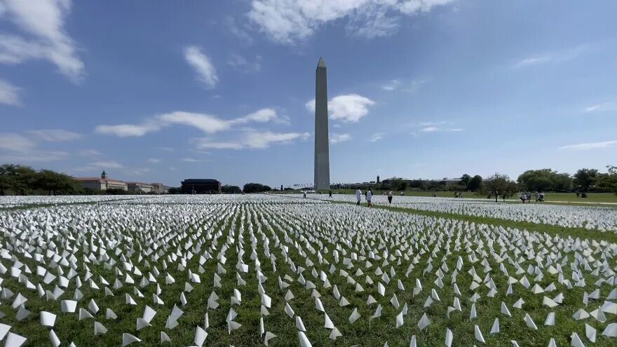 2021年9月,志愿者们在华盛顿特区的华盛顿纪念碑附近竖起了白色旗帜,纪念美国当时因新冠而丧生的死者。现在,倡导者们希望通过一个可以永久保存下来的纪念馆铭记这段经历,同时表达对这些死者的缅怀。