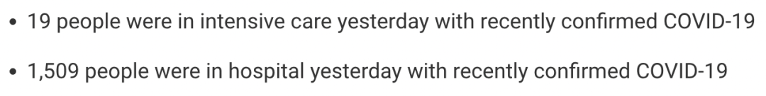 从2021年3月5日以来,苏格兰地区共有34,366名(+115)确诊患者出院。截至3月9日午夜,近期住院的疑似/确诊新冠患者1,509名(+69),其中19名(=)确诊新冠在重症监护室ICU。