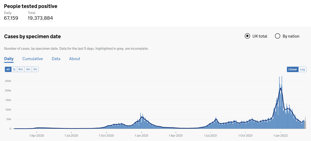 英国日增确诊案例趋势图