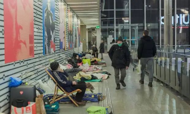 在罗马尼亚Iași机场的狭小空间里,志愿者们为不断涌入的乌克兰难民提供食物、饮料和翻译服务。前往意大利、奥地利、波兰和爱尔兰的航线都被预订一空。但唯一没有客满的飞机是飞往伦敦卢顿Luton的航班。