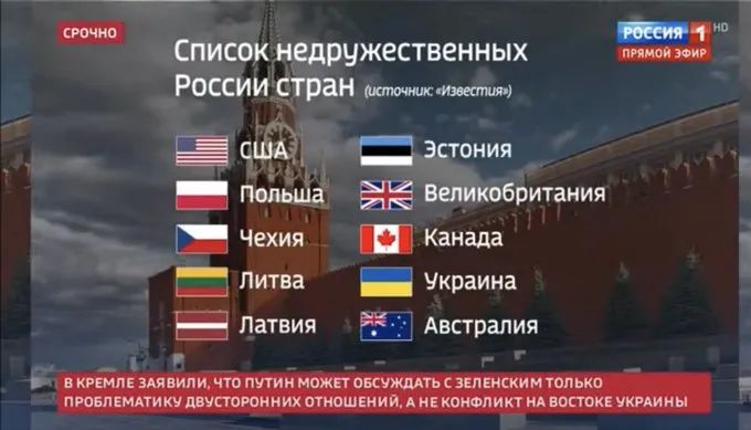 这份不友好国家名单包括英国、美国、欧盟、澳大利亚、乌克兰、日本和其他16个国家。
