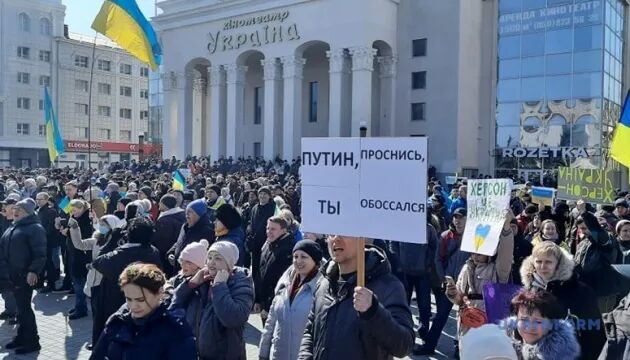 于此同时,目前被俄罗斯军队占领的乌克兰东部Kherson的抗议活动仍在继续。