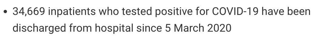 从2021年3月5日以来,苏格兰地区共有34,669名(+119)确诊患者出院。截至3月11日午夜,近期住院的疑似/确诊新冠患者1,663名(+127),其中23名(+1)确诊新冠在重症监护室ICU。