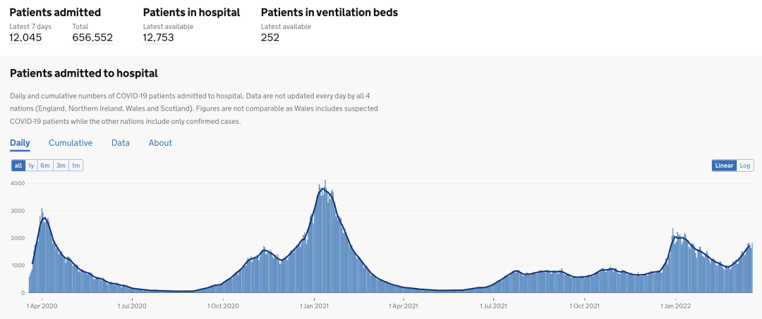 3月21日数据:目前住院的确诊新冠患者12,753人,累计住院新冠患者总数为656,552(+12,045)。