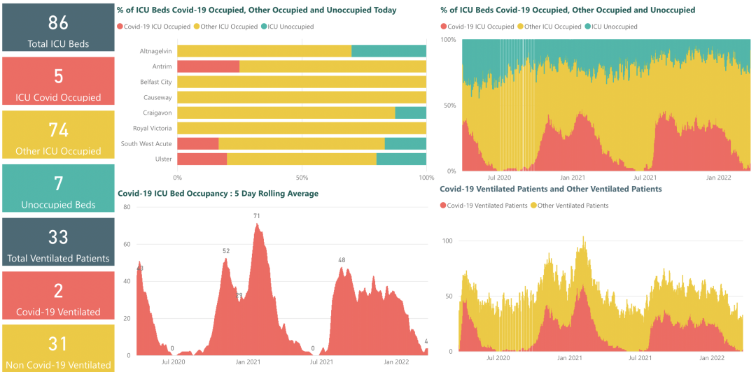 从2021年3月5日以来,苏格兰地区共有36,196名(*)确诊患者出院。截至3月21日午夜,近期住院的疑似/确诊新冠患者2,128名(+78),其中31名(=)确诊新冠在重症监护室ICU。