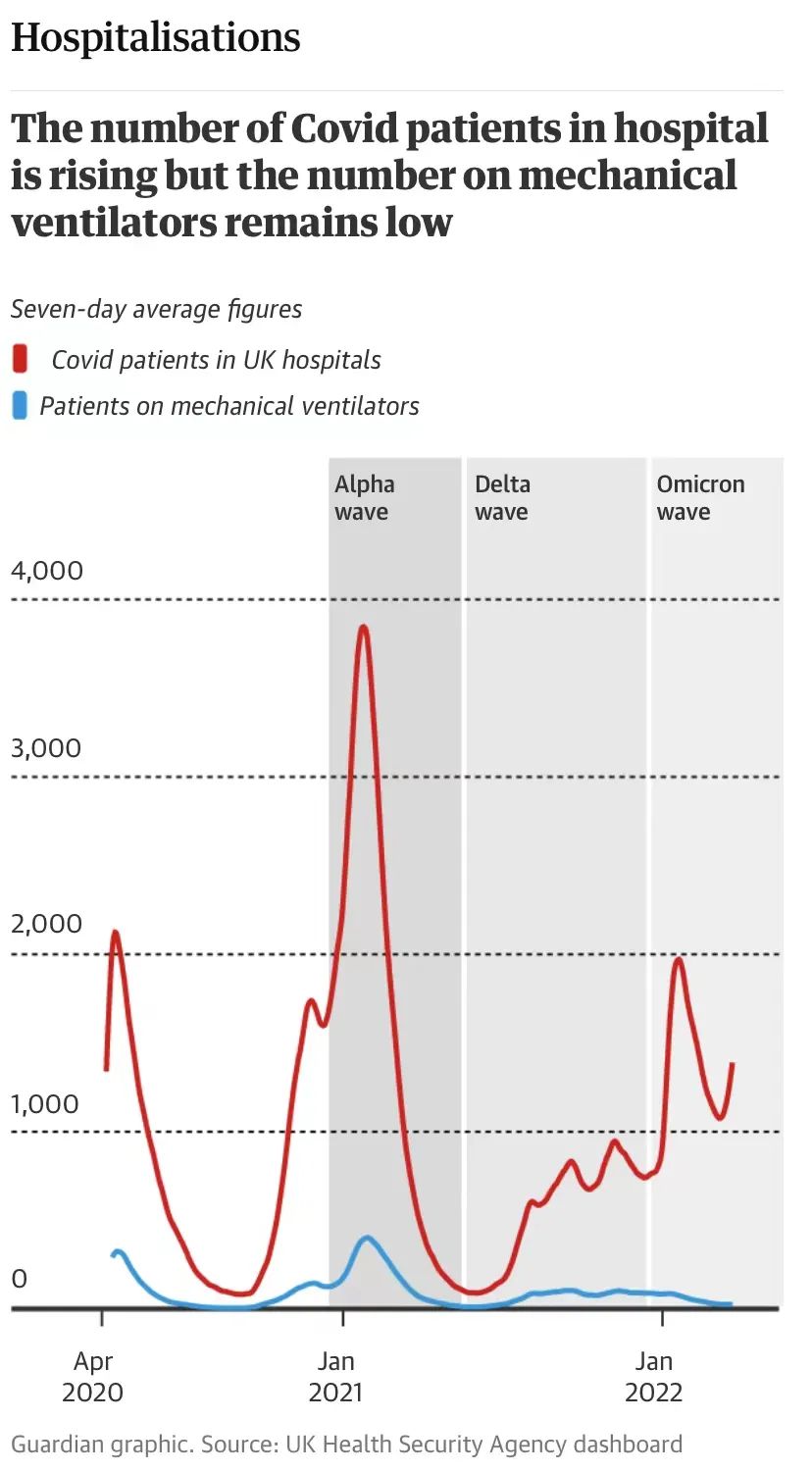 3月以来,英国因新冠住院患者人数一直在上升,根据7天的平均数字,截至3月18日,该数字为13,876。但仍低于2021年1月38,400的峰值。