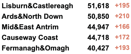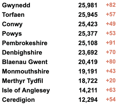 苏格兰病例上升幅度最大,同一周平均每10万人中有1,639例新病例。北爱尔兰地区病例率已连续几天下降,为每10万人中有787例。英格兰和威尔士病例率较低,分别为每10万人中有780例和每10万人中有392例。