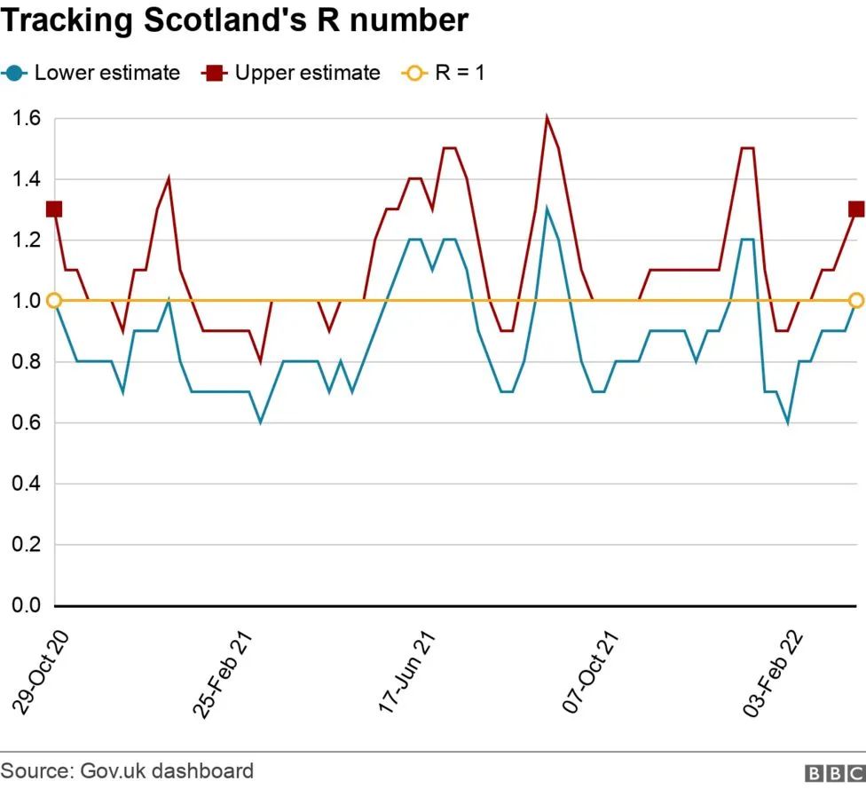 自疫情开始以来,苏格兰政府一直在监测该地区的感染率R值。最新数据显示,这一数据保持在1-1.3。