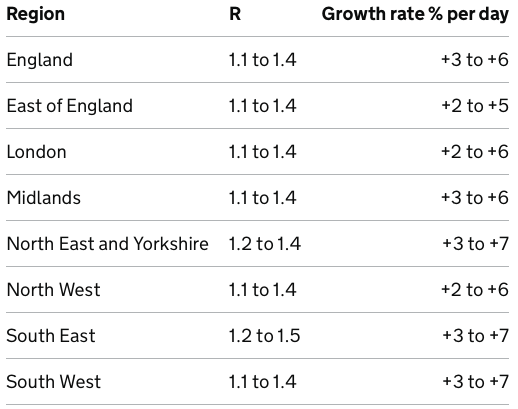 英格兰R值在1.1-1.4之间
