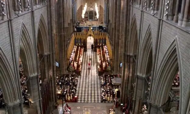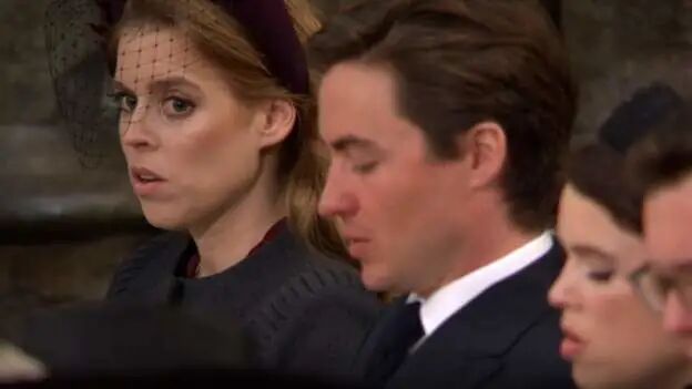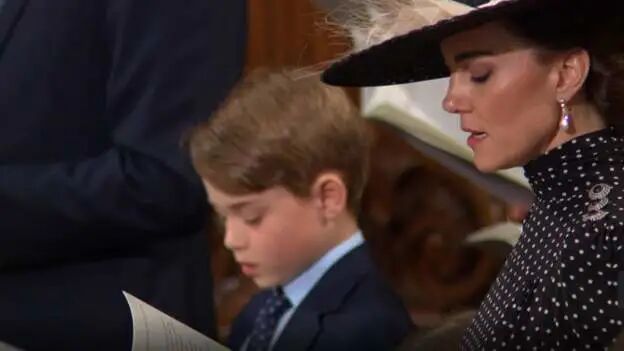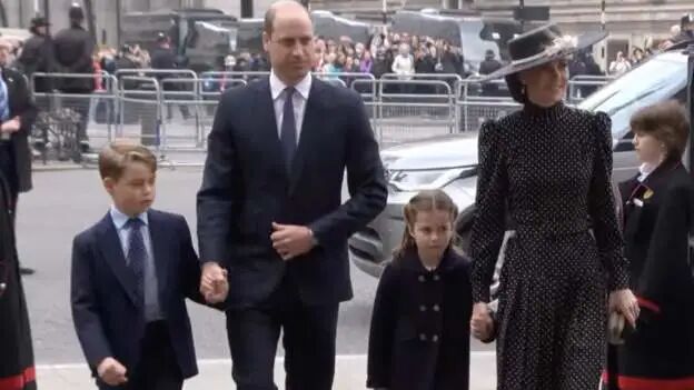 女王坐在与菲利普亲王结婚的教堂里,她的家庭四代人都在场。