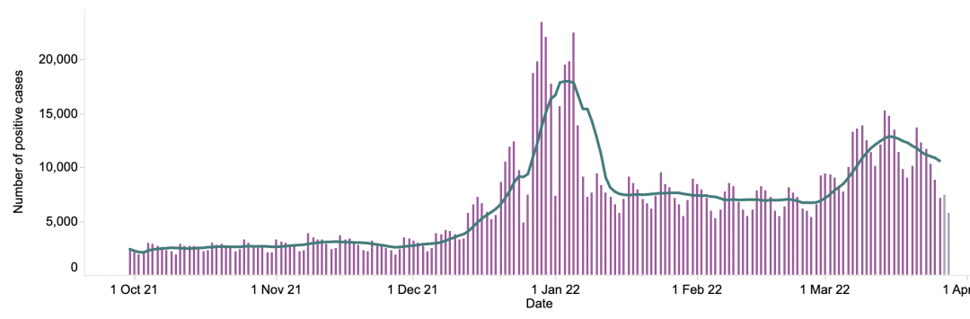 截止至2022年3月29日(周二)英国时间09:00,累计检测结果量495,294,424(+722,535);累计确诊20,986,171例(+80,830);累计病亡164,974(+303)。