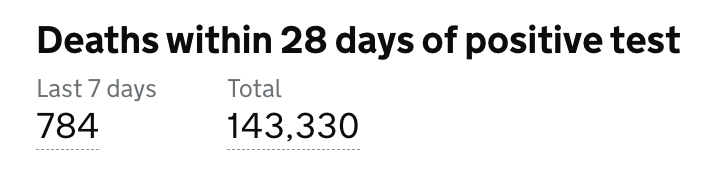 目前英格兰地区使用呼吸机的新冠患者有318人(+28);病亡新冠患者总计143,330人(+784)。