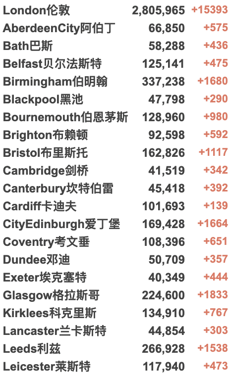 英国大学城市疫情具体数据