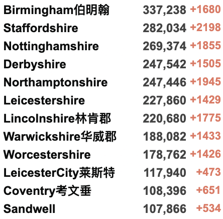 英国疫情实时地图 / 城区具体数据