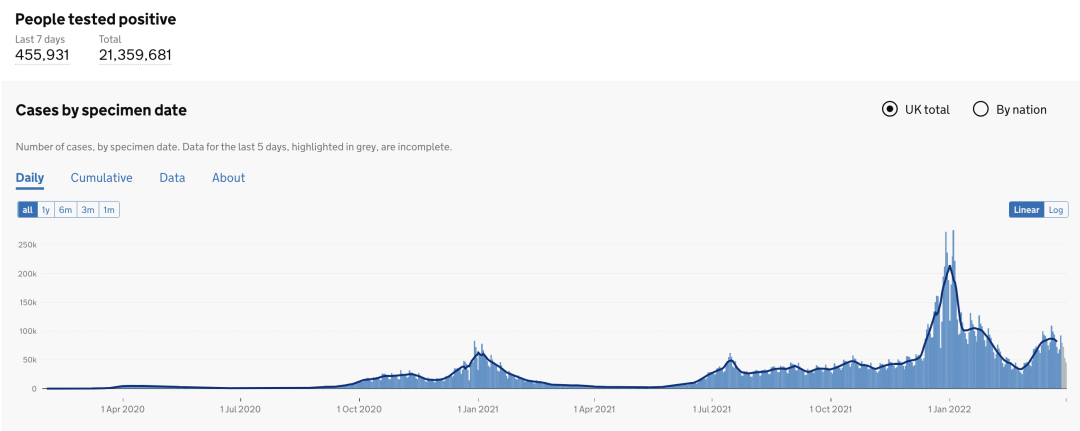 截止至2022年4月4日(周一)英国时间09:00,累计检测结果量499,086,771(+497,415);累计确诊21,359,681例(+143,382,3日累积);累计病亡165,780(+210,3日累积)。