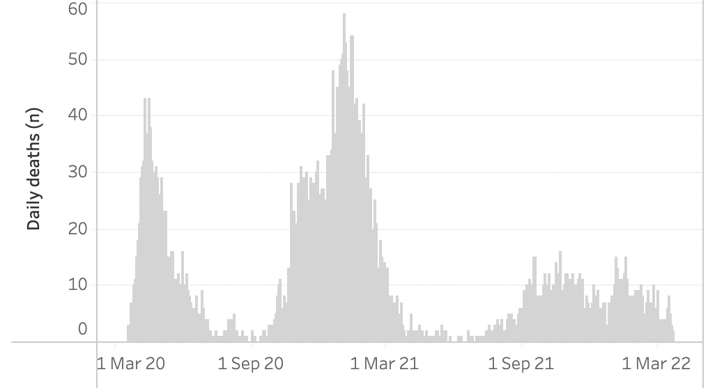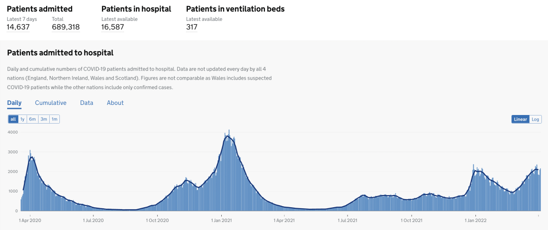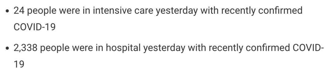 从2021年3月5日以来,苏格兰地区共有39,102名(+211)确诊患者出院。截至4月6日午夜,近期住院的疑似/确诊新冠患者2,338名(-42),其中24名(=)确诊新冠在重症监护室ICU。