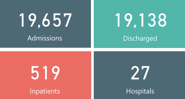 4月6日数据:住院的确诊新冠患者共27人(=),已出院的确诊新冠患者19,138人(+62),治愈率目前为99.8%。重症ICU疑似/确诊新冠患者5人(-1),空余的重症ICU床15张(=)。