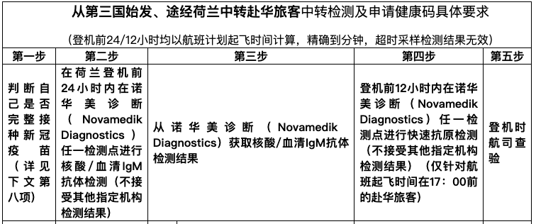 颈长将具体就「经荷兰中转回国旅客」对最新要求进行梳理。