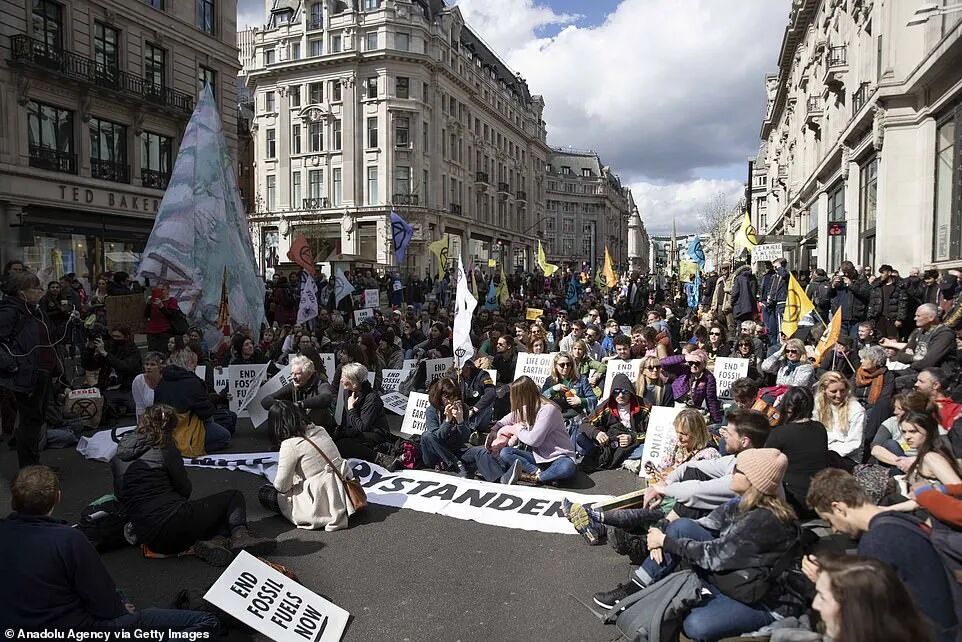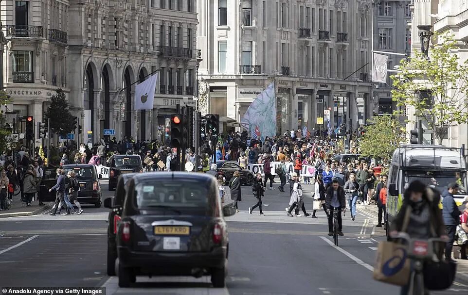 静坐活动使牛津街和摄政街的交通陷入瘫痪。