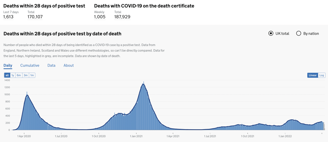 目前英格兰地区使用呼吸机的新冠患者有337人(+25);病亡新冠患者总计147,840人(+1,374)。