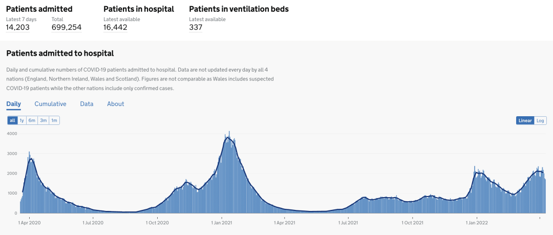 4月11日数据:目前住院的确诊新冠患者16,442人,累计住院新冠患者总数为699,254(+14,203)。