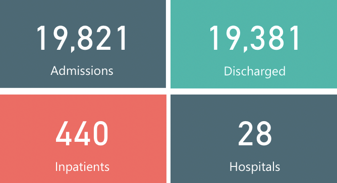 4月12日数据:住院的确诊新冠患者共28人(+1),已出院的确诊新冠患者19,381人(+138),治愈率目前为99.8%。重症ICU疑似/确诊新冠患者3人(=),空余的重症ICU床23张(-1)。