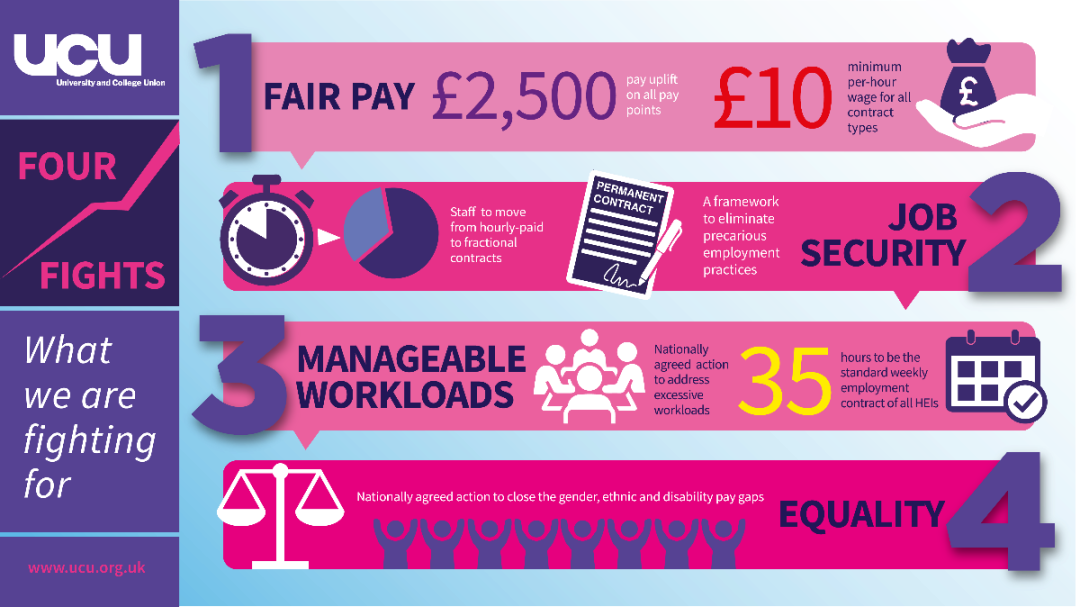 针对薪酬和工作条件纠纷,UCU提出的4项条件如下: