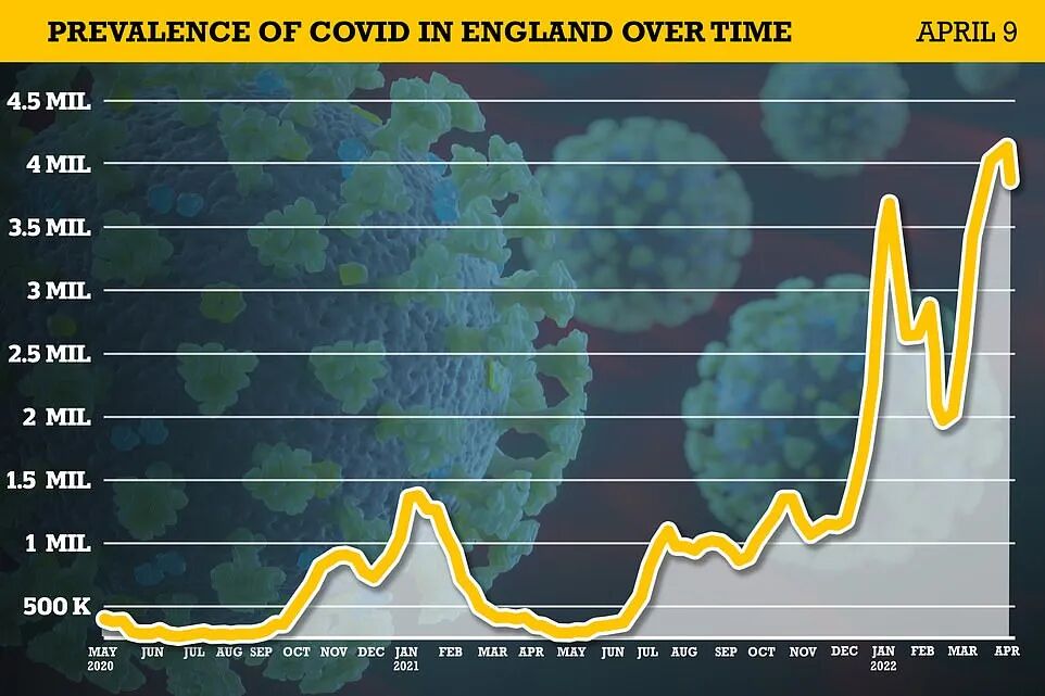 根据国家统计局(ONS)的估计,在截至4月9日的一周里,约有370万人处于新冠阳性活跃状态,每15人中就有1人感染新冠病毒,比前一周的数据(410万)下降了近9%。