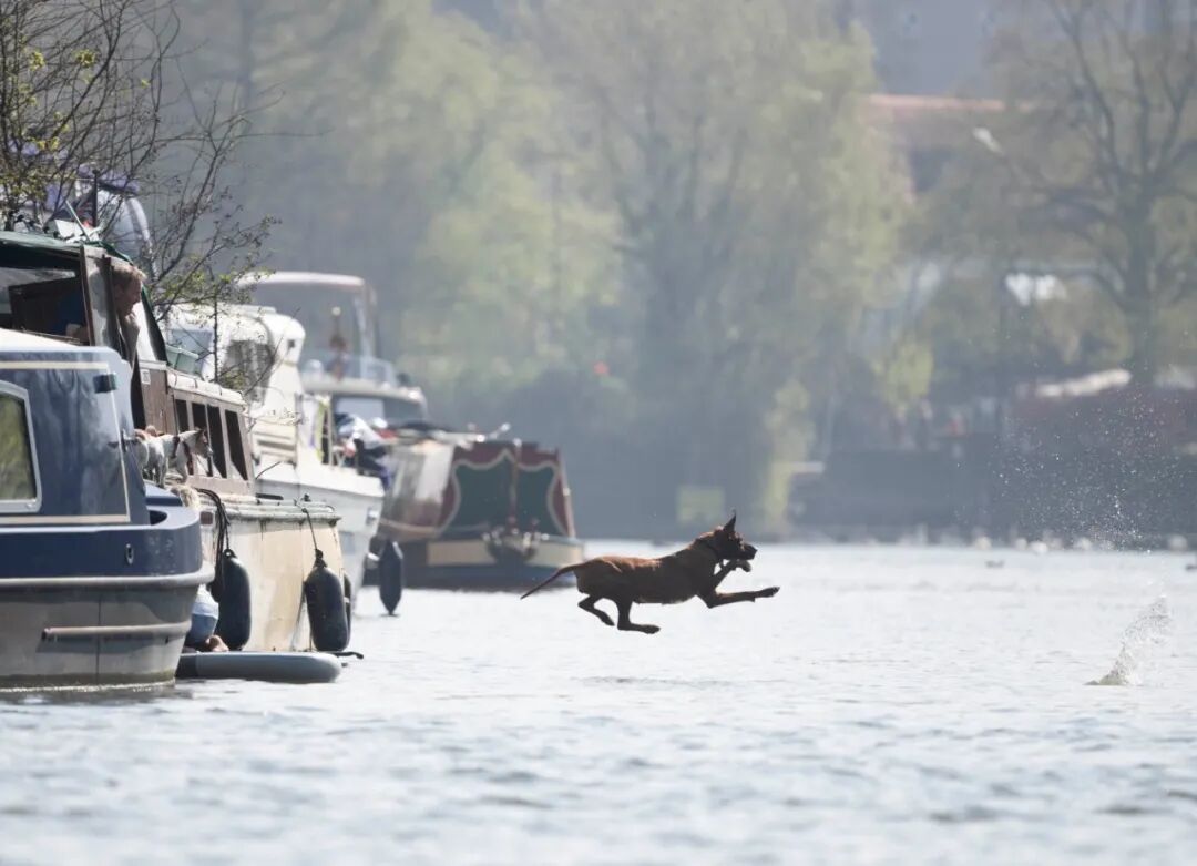 连狗都忍不住,往水里跳了...