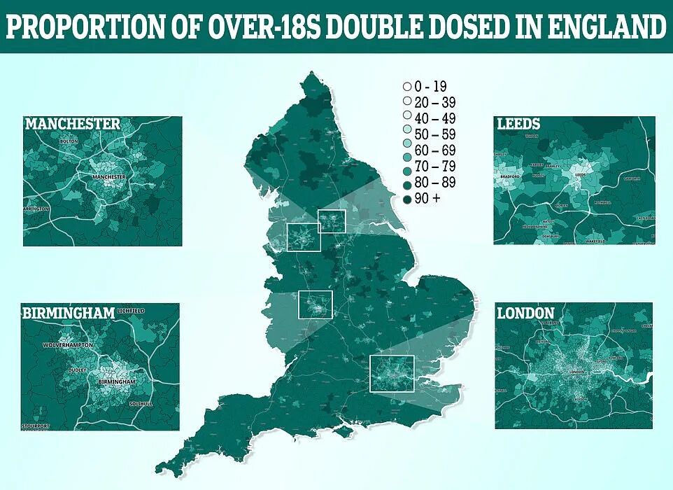 18岁以上两剂疫苗接种率 | 图片来源Daily Mail