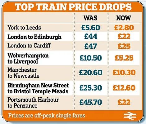 据称,这是交通部首次推出如此大范围的折扣优惠,预计部分曼彻斯特到纽卡斯尔的车票将降至£10左右;伦敦到爱丁堡车票将从£44降至£22;伦敦到卡迪夫的部分车票则从£47降至£25。