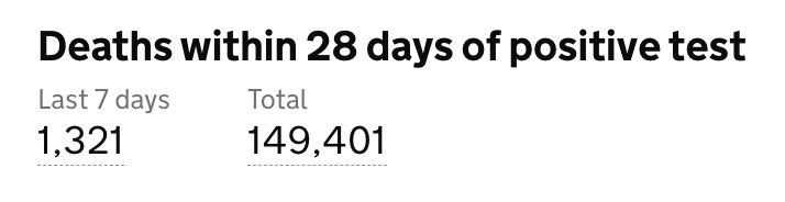 目前英格兰地区使用呼吸机的新冠患者有296人(-3);病亡新冠患者总计149,401人(+1,321)。