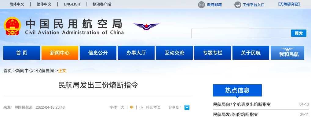 4月15日和18日,民航局对3个航班发出熔断指令,其中对英国回国有影响的航班有: