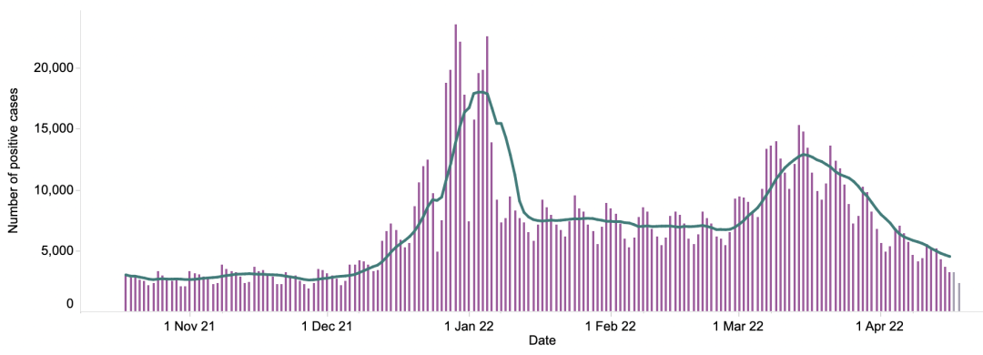 中国香港疫情持续呈下降趋势,特区政府卫生防护中心4月19日(周二)下午通报,截至当日零时,香港新增600例确诊病例,确诊连续五天在1,000例以下;新增17例死亡病例。