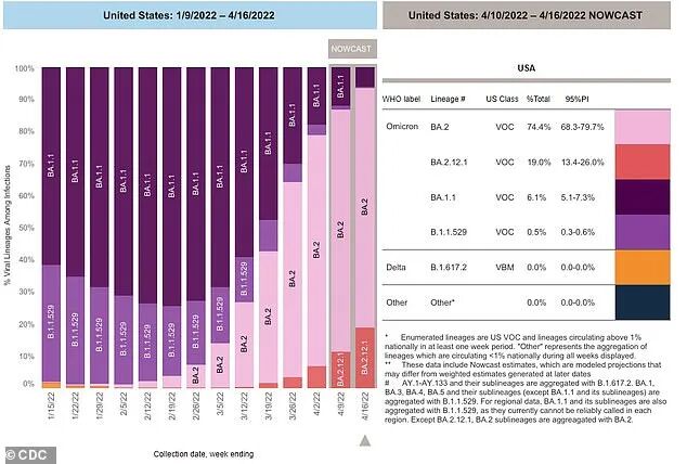 据信,BA.2.12.1型亚株比Omicron变种BA.2型亚株的繁殖率高27%。然而,顶级科学家坚持认为,没有证据表明BA.2.12.1比其他变种造成感染后重症的可能性更高。