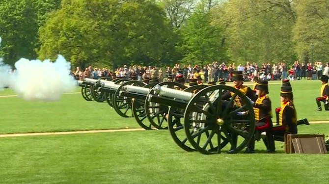 温莎女王卫队在卫队换岗仪式上演奏了一曲《生日快乐》;英国皇家骑乘炮兵团在白金汉宫附近的海德公园和伦敦桥分别发射了41门和62门礼炮,纪念女王96岁生日。