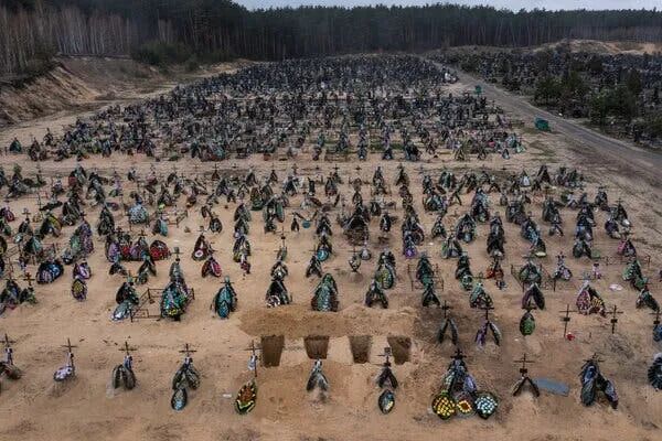 乌克兰官员称,他们在马里乌波尔Mariupol市外发现了乱葬岗(mass graves)。美国卫星图像公司Maxar Technologies收集和分析的照片显示,在马里乌波尔以西约19公里的Manhush出现了200多个新坟墓。