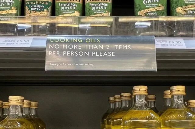 由于俄乌冲突造成的供应链问题,英国各地超市对顾客购买食用油(包括橄榄油和菜籽油等)的数量进行了限制。