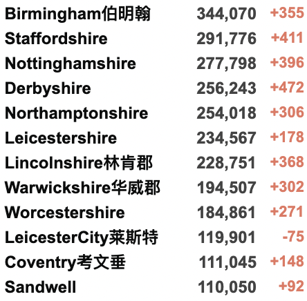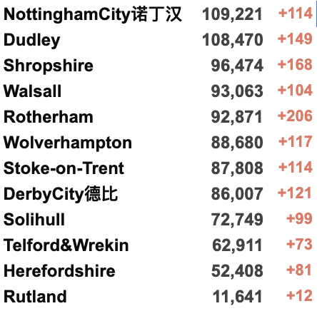 英国疫情实时地图 / 城区具体数据