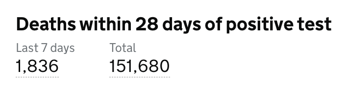 目前英格兰地区使用呼吸机的新冠患者有260人(-16);病亡新冠患者总计151,680人(+1,836)。