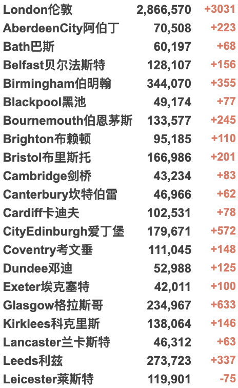 英国大学城市疫情具体数据