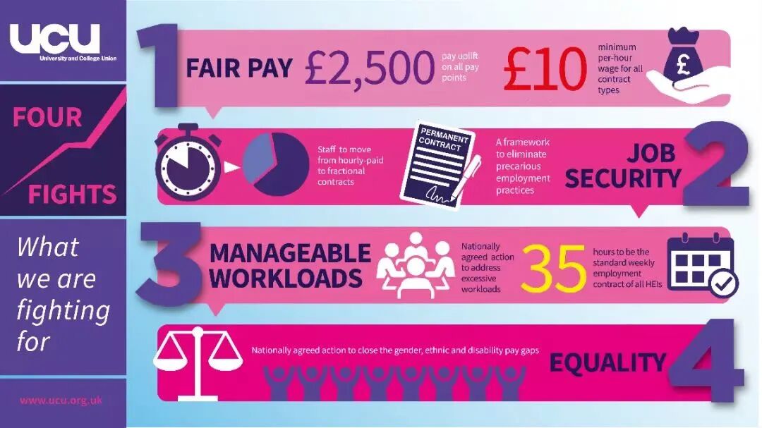 针对薪酬和工作条件纠纷,UCU提出的4项条件如下: