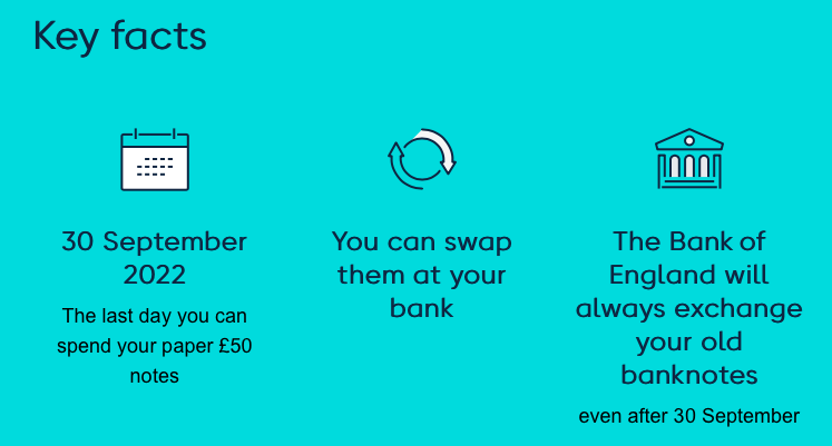手上还有现金的小伙伴们注意啦!旧版£20和£50的纸币从今年 9月30日 开始,将不再被视为法定货币。取而代之的是一种新设计的聚合物(一种塑料)纸币。