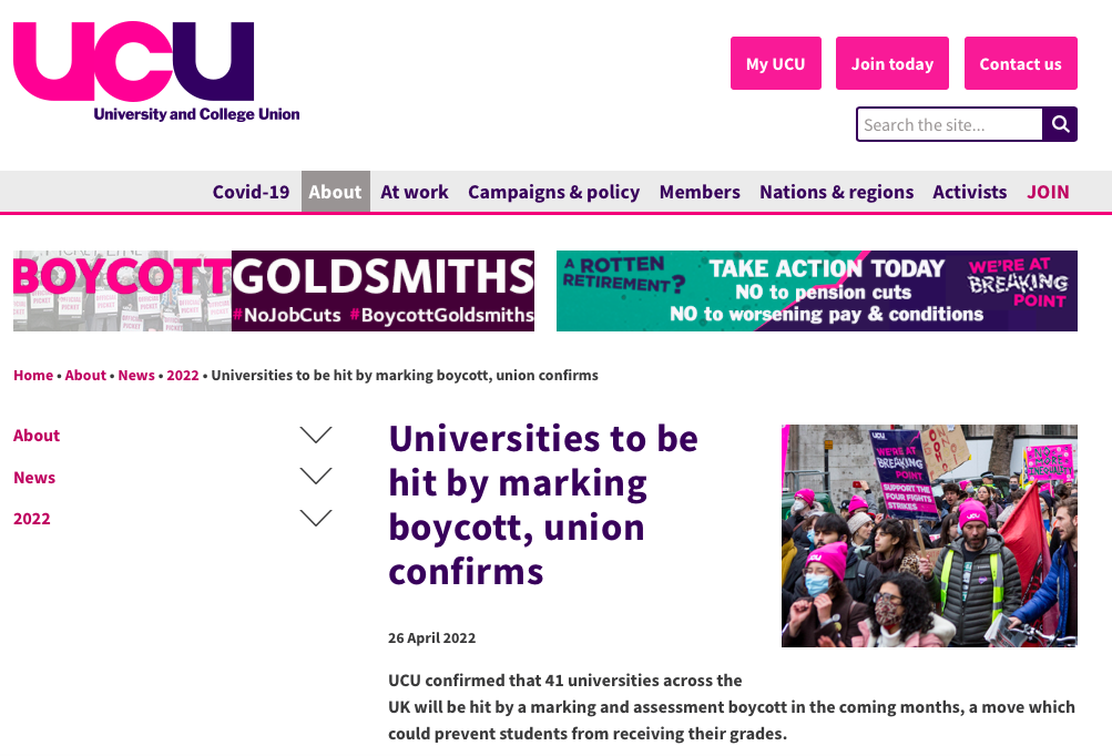 英国大学工会UCU证实,作为非罢工行动(ASOS)的一部分,在未来几个月里,全英有41所大学的部分教师将拒绝为学生提供成绩评分,此举可能导致学生无法得到成绩,甚至无法顺利毕业。