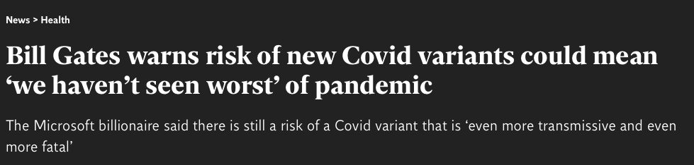 这位亿万富翁曾在2015年发表演讲,声称”世界没有为下一次流行病做好准备“,病毒,而不是战争,将会带来”全球灾难“的最大风险。