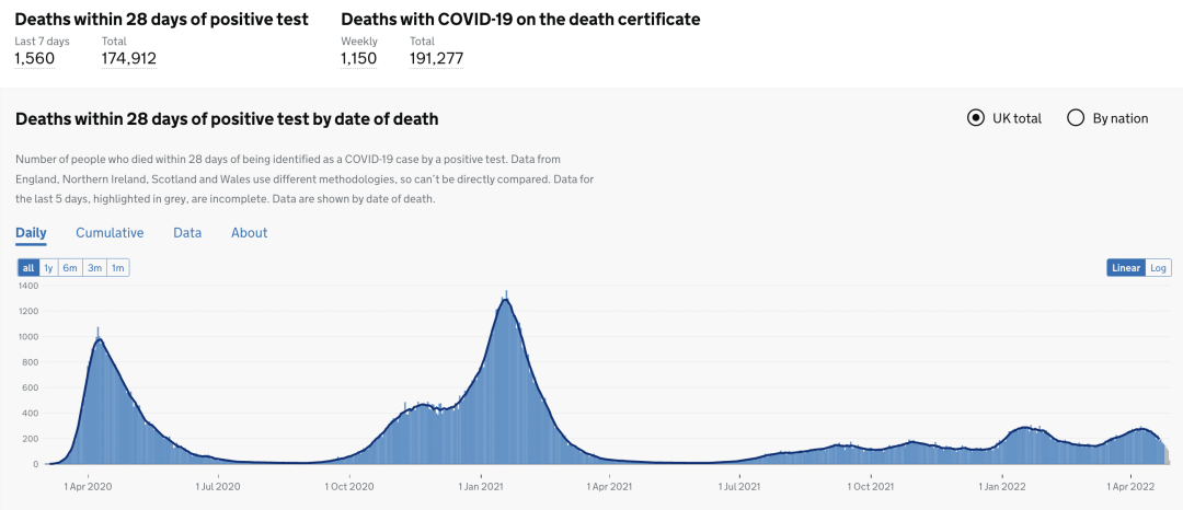 英国日增病亡案例趋势图